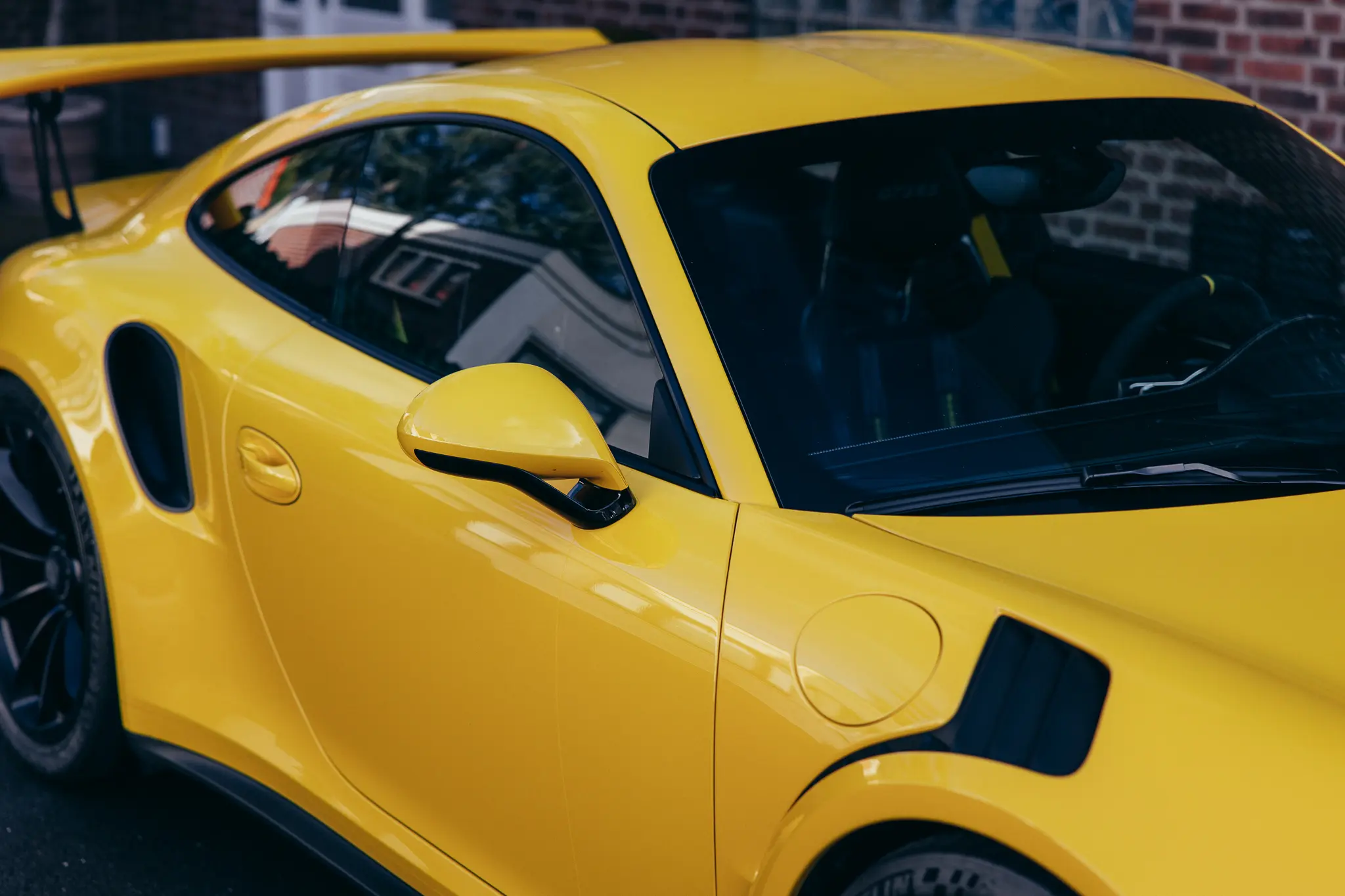 This 2016 example was originally delivered in Finland and stands out immediately thanks to its Paint to Sample Racing Yellow finish, an exceptionally rare specification for the 991.1 GT3 RS. The colour gives the car tremendous presence and is complemented by a particularly desirable configuration, including clear taillights, PCCB, and 918 carbon bucket seats. Notably, this car was specified without the Clubsport package, a detail that will appeal to those seeking a cleaner and more road-focused interior environment, while a harness bar with Schroth harnesses has been fitted as a subtle nod to its track-bred character.